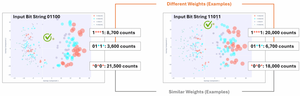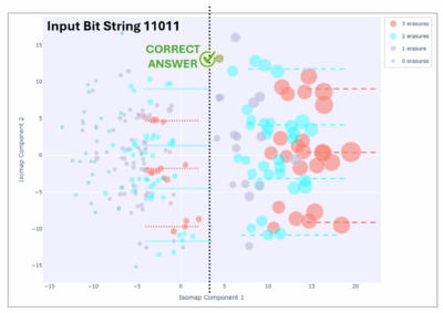 A second possible direction is building a model that starts to identify the relationships between input bit strings and the erasure counts associated with them. We can leverage this new information for some new level of predictive gain. For example, we may gain insight into expected correct answers in regimes where erasures are dominating, simply based on the patterns we are observing. This is possible because error detection – and the availability of new high-quality data – enables the kind of unique patterns and correlations that aren’t possible in systems where silent errors are the primary source of decoherence.